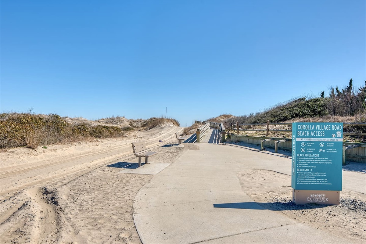 Walk out of the complex and to the right is the beach and the left is the light house and Whalehead. You are approximately 5 minutes from the 4x4 beach and walking distance from the Corolla Village Light Shopping Center. This new condo complex has everything you need.
