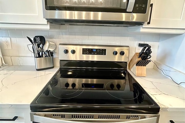 The kitchen comes fully equipped to include dishwasher, cookware, small appliances, Keurig and regular coffee pot. We will provide a starter kit of coffee pods, sugar, sweeteners, paper towels and toilet paper. Linens, towels, shampoo and conditioner, body soap and hand soap are also included.