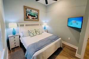 Unwind in one of the two king bedrooms, each with a 43-inch smart TV, ample closet space, and ceiling fans. The master bedroom offers the added convenience of USB chargers built into the nightstands, computer/gaming HDMI jack, large dresser and a private bathroom with a large shower and hair dryer. The guest bedroom features 4-drawer nightstands and direct access to the guest bathroom with tub and shower. Bed linens, towels, beach towels, extra blankets and pillows, shampoo, conditioner and shower gel all included for added convenience.